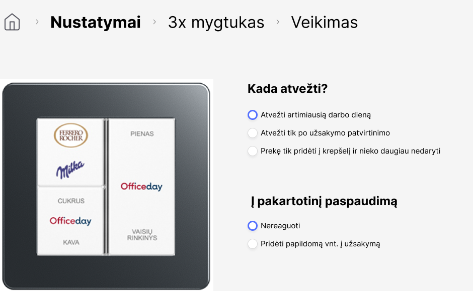 Jūs galėsite bet kada pakeisti, kas vyksta paspaudus mygtuką.