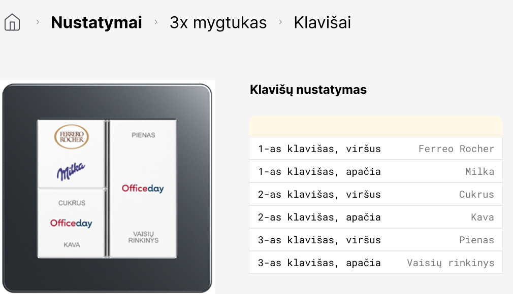 Pirminis jungiklio paleidimas atliekamas per mobiliąją aplikaciją. Vėliau keitimus galima daryti šiame puslapyje.